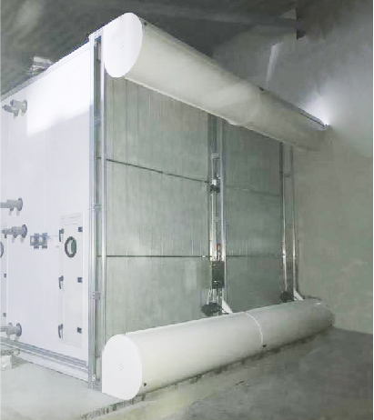 淮德半导体新建厂房新风入口采用OB卷帘过滤器作为初始过滤,并与空调箱紧密配套, 集约化的解决了大风量需求下的空气洁净度问题。