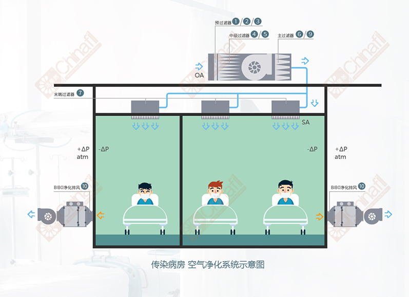 传染病房空气过滤系统原理: